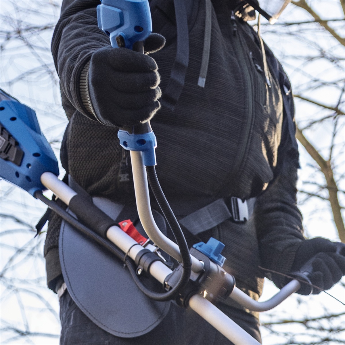 Křovinořez je poháněn silnými bateriemi 2x20 V (celkem 40 V), které poskytují dostatek energie i pro náročné úkoly v členitějším terénu. Se záběrem struny 380 mm (255 mm u žacího nože) si poradí jak s trávníkem, tak i s hustým podrostem a drobnějšími nálety. Prémiový trojzubý nůž je navržen pro efektivní sečení i v náročných podmínkách, zatímco funkce Tap’n’Go u strunové hlavy umožňuje snadné poloautomatické prodloužení struny o průměru 1,6 mm. Pro zvýšení pohodlí při práci je křovinořez vybaven nastavitelnými řídítky s protiskluzovým povrchem a antivibračním uložením. Díky třem úrovním rychlosti (4000, 5000 a 6200 ot./min) můžete výkon snadno přizpůsobit konkrétním potřebám. Stroj se dá demontovat bez nutnosti použít nářadí, což výrazně usnadní přepravu nebo skladování.