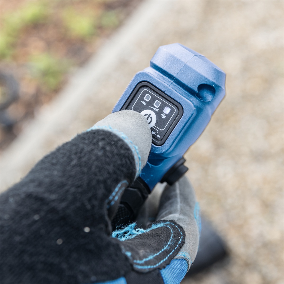 Křovinořez je poháněn silnými bateriemi 2x20 V (celkem 40 V), které poskytují dostatek energie i pro náročné úkoly v členitějším terénu. Se záběrem struny 380 mm (255 mm u žacího nože) si poradí jak s trávníkem, tak i s hustým podrostem a drobnějšími nálety. Prémiový trojzubý nůž je navržen pro efektivní sečení i v náročných podmínkách, zatímco funkce Tap’n’Go u strunové hlavy umožňuje snadné poloautomatické prodloužení struny o průměru 1,6 mm. Pro zvýšení pohodlí při práci je křovinořez vybaven nastavitelnými řídítky s protiskluzovým povrchem a antivibračním uložením. Díky třem úrovním rychlosti (4000, 5000 a 6200 ot./min) můžete výkon snadno přizpůsobit konkrétním potřebám. Stroj se dá demontovat bez nutnosti použít nářadí, což výrazně usnadní přepravu nebo skladování.