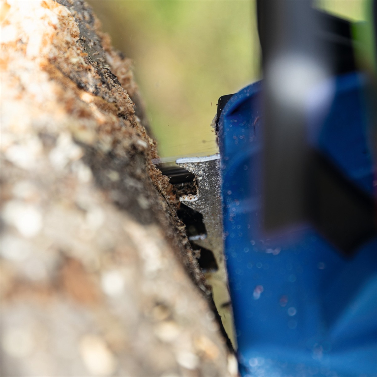 Bezpečnost při provozu zajišťuje ochrana proti zpětnému rázu (brzda řetězu, která zastaví pohyb během několika milisekund) a kovový opěrný doraz, který zajistí pevnou a stabilní polohu při práci.