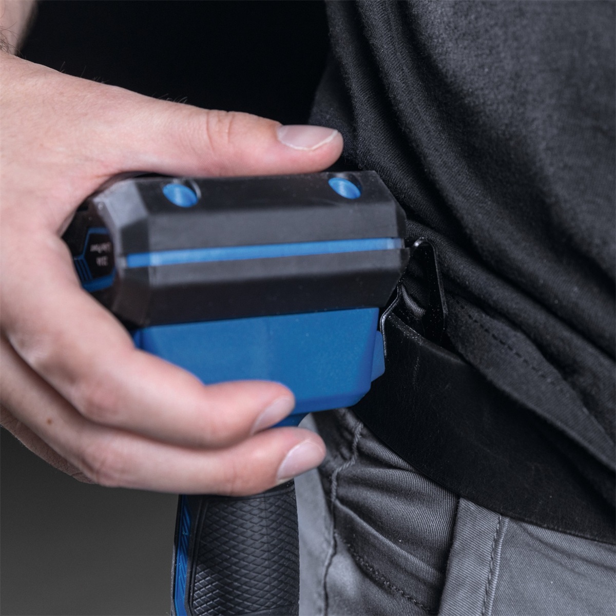 Kvalitní rychloupínací kovové sklíčidlo s automatickým zámkem vřetene pojme vrtáky a bity o průměru 1,5–13 mm. Praktické LED pracovní světlo s funkcí osvětlení po dobu 10 sekund po vypnutí nástroje zajistí dostatek světla i v tmavých prostorech. Díky integrovanému klipu na opasek je vrtačka ideální i pro práci na žebříku nebo ve výškách.