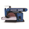 Stroj nabízí vysokou variabilitu – jednotku s brusným pásem lze naklápět v rozsahu 0–90°, tedy od horizontální do vertikální polohy. Přídavný pracovní stolek s úhlovým pravítkem je sklopný a lze jej zajistit mezi 0° a 45°. Na rozdíl od mnoha konkurenčních modelů je kotoučová bruska plně integrována do těla stroje, takže neomezuje prostor pro práci ani s většími obrobky. Brusný papír se na kotouč upevňuje snadno pomocí suchého zipu.
