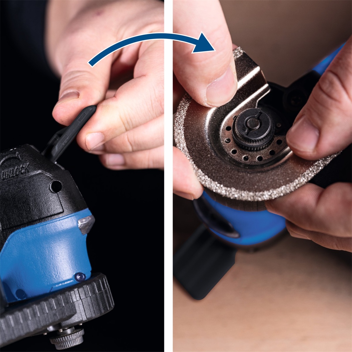 Multifunkční nástroj je vybaven moderním uhlíkovým motorem zajišťující plynulý chod. S proměnnou rychlostí oscilace nastavitelnou v šesti úrovních (10 000 až 40 000 otáček za minutu) se přizpůsobí každé pracovní situaci. Nastavitelný směr uchycení příslušenství zajišťuje snadný přístup i k těžko dostupným místům. Robustní kovové převody zaručují dlouhou životnost a odolnost i při plnění náročných úkolů. Oscilační úhel 3,2° umožňuje precizní práci při různých aplikacích.