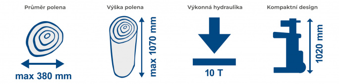 - mohutný rozšiřovací štípací klín, který si poradí i s poleny o průměru až 380 mm