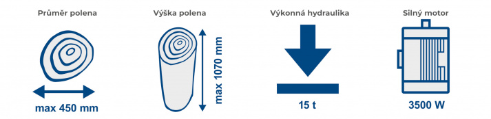 - mohutný rozšiřovací štípací klín, který si poradí i s poleny o průměru až 450 mm