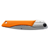 Pohodlný úchop nástroje zajišťuje krásně žlutá pryžová rukojeť, která absorbuje vibrace a neklouže ani za mokra. Otvor v rukojeti pak umožňuje připevnění lanka nebo karabiny. Při složení pily jsou zuby dokonale chráněny před vnějšími mechanickým vlivy a zároveň nepoškozují okolní věci, takže lze pilku v klidu sbalit do batohu na vícedenní výlet.