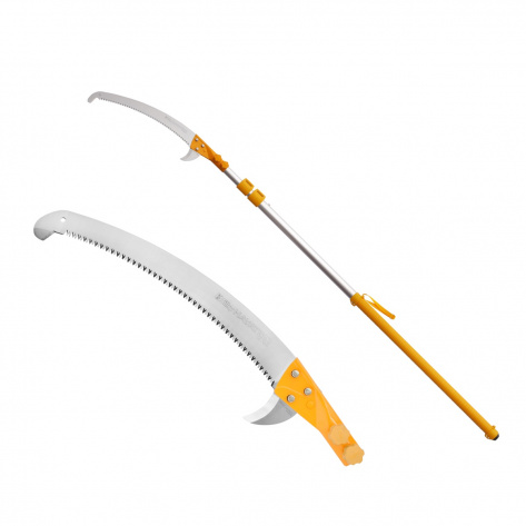Jedná se o opravdu robustní teleskopickou pilu určenou speciálně pro profesionály. Její extrémní délka Vám v plně roztaženém stavu ummožní prořezávat větve ve výšce až 6,5 metru bez toho, aniž byste museli použít žebřík. Řeznou rychlost pily Hayate lze pak srovnat s rychlostí malé motorové pily. Čepel je konstruována tak, aby zabírala primárně v tahu, a proto má pila takový řezný výkon, že se i při delší práci nebudete cítit vyčerpaní. Využijte váhu kvalitního hliníkového těla a nechte pilu pracovat za Vás!