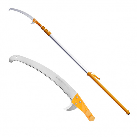 Jedná se o opravdu robustní teleskopickou pilu určenou speciálně pro profesionály. Její extrémní délka Vám v plně roztaženém stavu ummožní prořezávat větve ve výšce až 9 metrů bez toho, aniž byste museli použít žebřík. Řeznou rychlost pily Hayate lze pak srovnat s rychlostí malé motorové pily. Čepel je konstruována tak, aby zabírala primárně v tahu, a proto má pila takový řezný výkon, že se i při delší práci nebudete cítit vyčerpaní. Využijte váhu kvalitního hliníkového těla a nechte pilu pracovat za Vás!