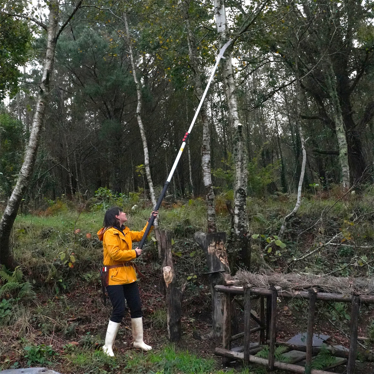 Prořezávání ve vysokých korunách stromů vyžaduje spolehlivou a všestrannou pilu, a tou je přesně Silky Hayauchi. Jedná se o lehkou teleskopickou tyčovou pilu, která se snadno používá. S její pomocí tak můžete prořezávat stromy celý den, aniž byste se nějak zásadně unavili. V plně rozloženém stavu budete schopni řezat větve až ve výšce kolem 8 metrů. Čepel je navíc konstruována tak, aby zabírala primárně v tahu. Proto je ideální využít váhy kvalitního hliníkového těla a nechat pilu pracovat za Vás.