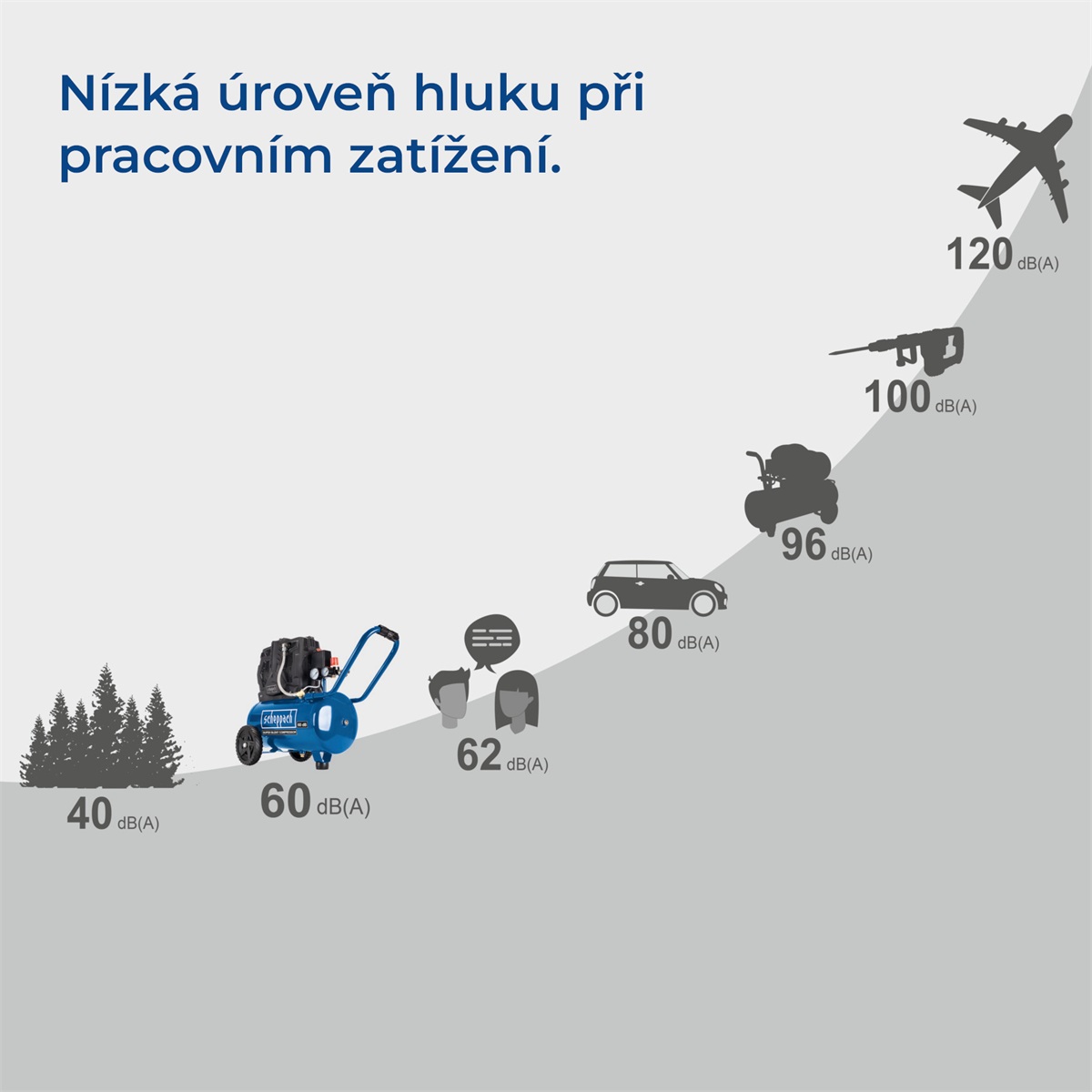 HC 25 Si - tichý bezolejový dvouválcový kompresor 24 l