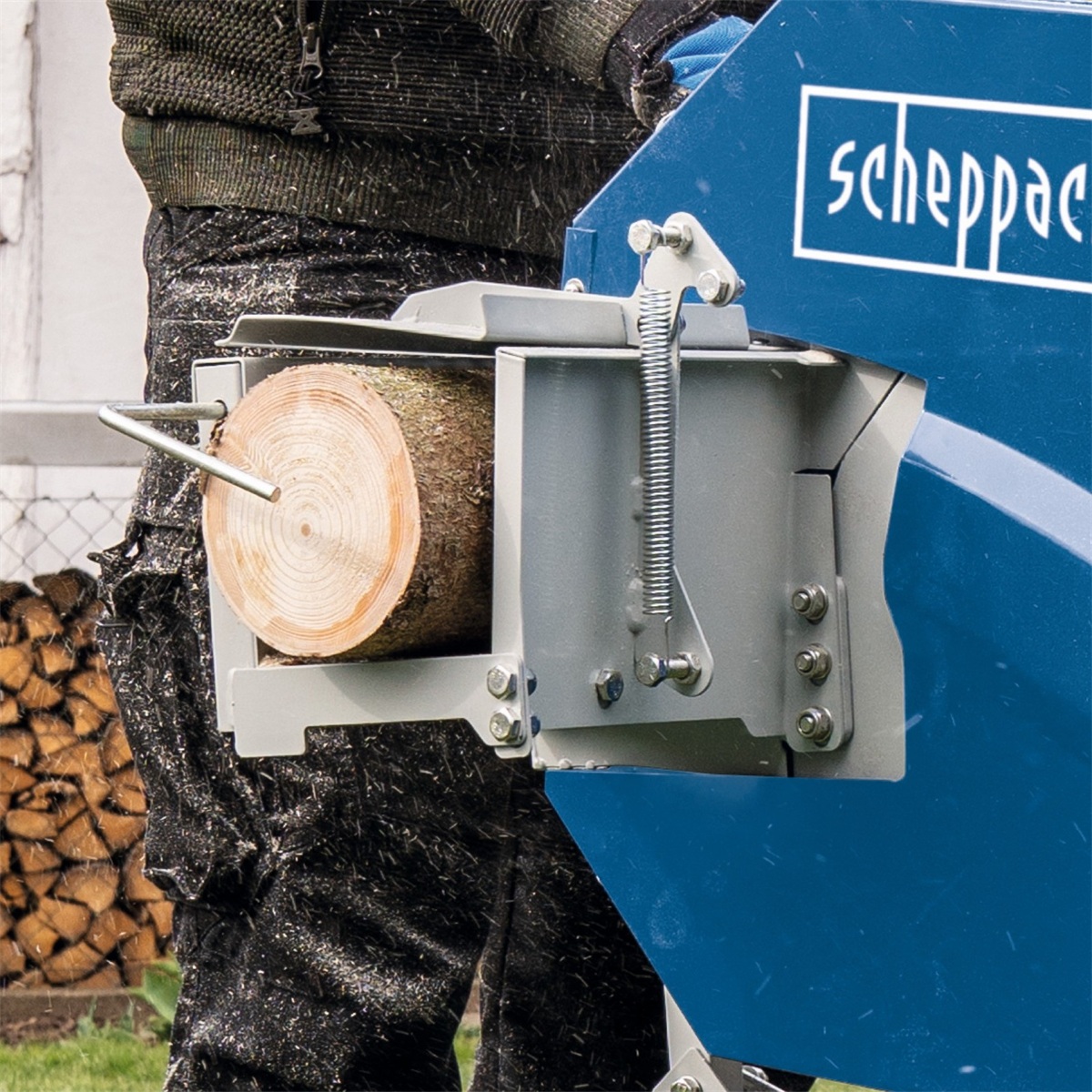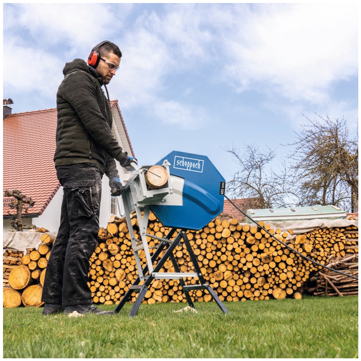 • Kolébková pila Scheppach HS 410 je moderní a hlavně bezpečná varianta oblíbených cirkulárek. Pila umožňuje velmi rychlou práci v pohodlné, vzpřímené poloze. Její obsluha je naprosto snadná. Vložíte kulatinu, polokulatinu nebo prkno do podavače, který uchopíte pomocí dvou velkých madel a lehkým přítlakem proti pilovému kotouči dřevo uříznete. Díky pružinovému systému se podavač (kolébka) automaticky vrátí do výchozí polohy. Dřevo posunete a proces opakujete. Jde to velmi rychle. Ruce jsou po celou dobu mimo dosah pilového kotouče. Pro řezání jednotných délek polen lze využít měřítko a polohovatelnou zarážku. Tvar a speciální výstupky na kolébce neumožňují protáčení polen při řezání a tvar rovněž přispívá k velkému prořezu kulatiny 135 mm. Celá pila je kompaktní a nezabere mnoho místa, její konstrukce je však velmi robustní a odolná proti překlopení. Svařované ocelové profily, ošetřené kvalitním práškovým lakováním, jsou velmi stabilní v krutu a celá pila je dimenzována na dlouhý, bezstarostný provoz.