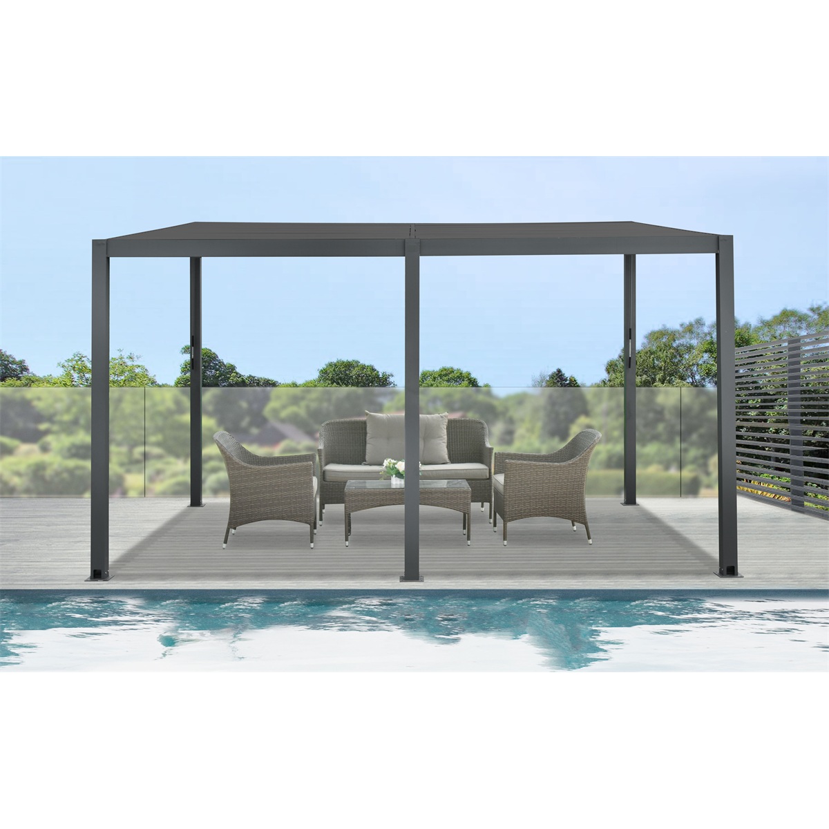 Střecha pergoly je tvořena 64 hliníkovými lamelami (louvre blades) a dvěma krycími díly. Lamely lze manuálně naklápět pomocí dvou ovládacích klik, což umožňuje plynule přecházet mezi otevřenou a uzavřenou střechou. Díky dvouzónovému systému střechy lze jednotlivé části otevírat a zavírat nezávisle na sobě – můžete si tak vychutnat sluneční paprsky na jedné straně, zatímco druhá část zůstává zastíněná.