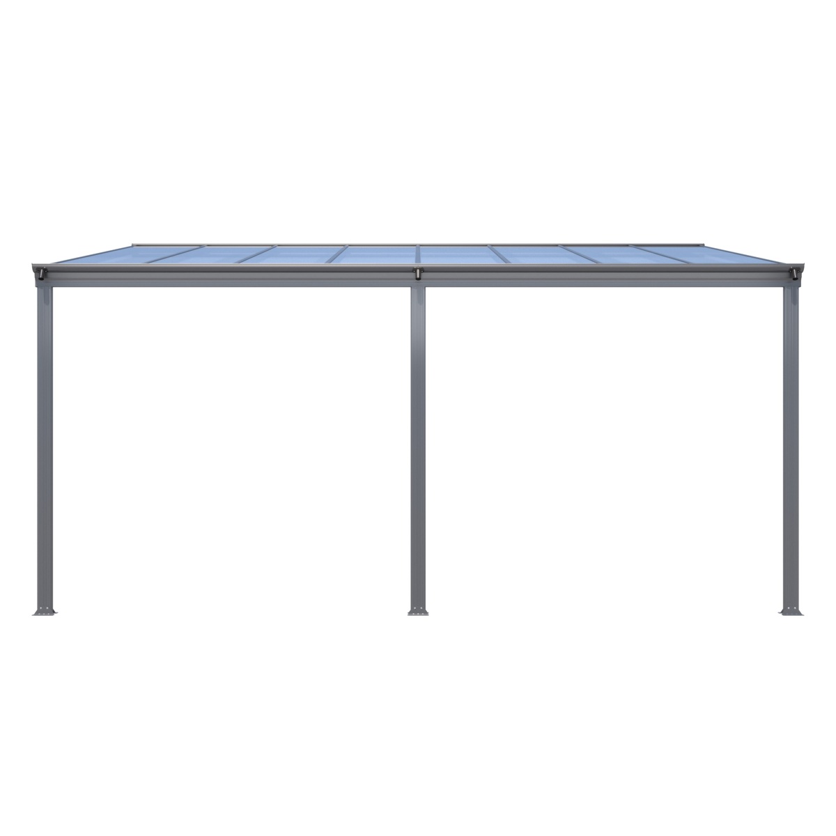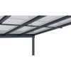 Střecha je osazena 6mm dvoukomůrkovým polykarbonátem v šedém odstínu, který je vybaven UV ochranou. Propouští dostatek přirozeného světla, ale zároveň účinně chrání před deštěm, slunečním zářením i nepříznivým počasím. Barevné provedení střechy harmonicky ladí s antracitovou konstrukcí a vytváří moderní a elegantní celek. Pro zvýšení odolnosti je pergola vybavena také dodatečným střešním vyztužením, které přispívá k vyšší pevnosti při zatížení větrem či sněhem.