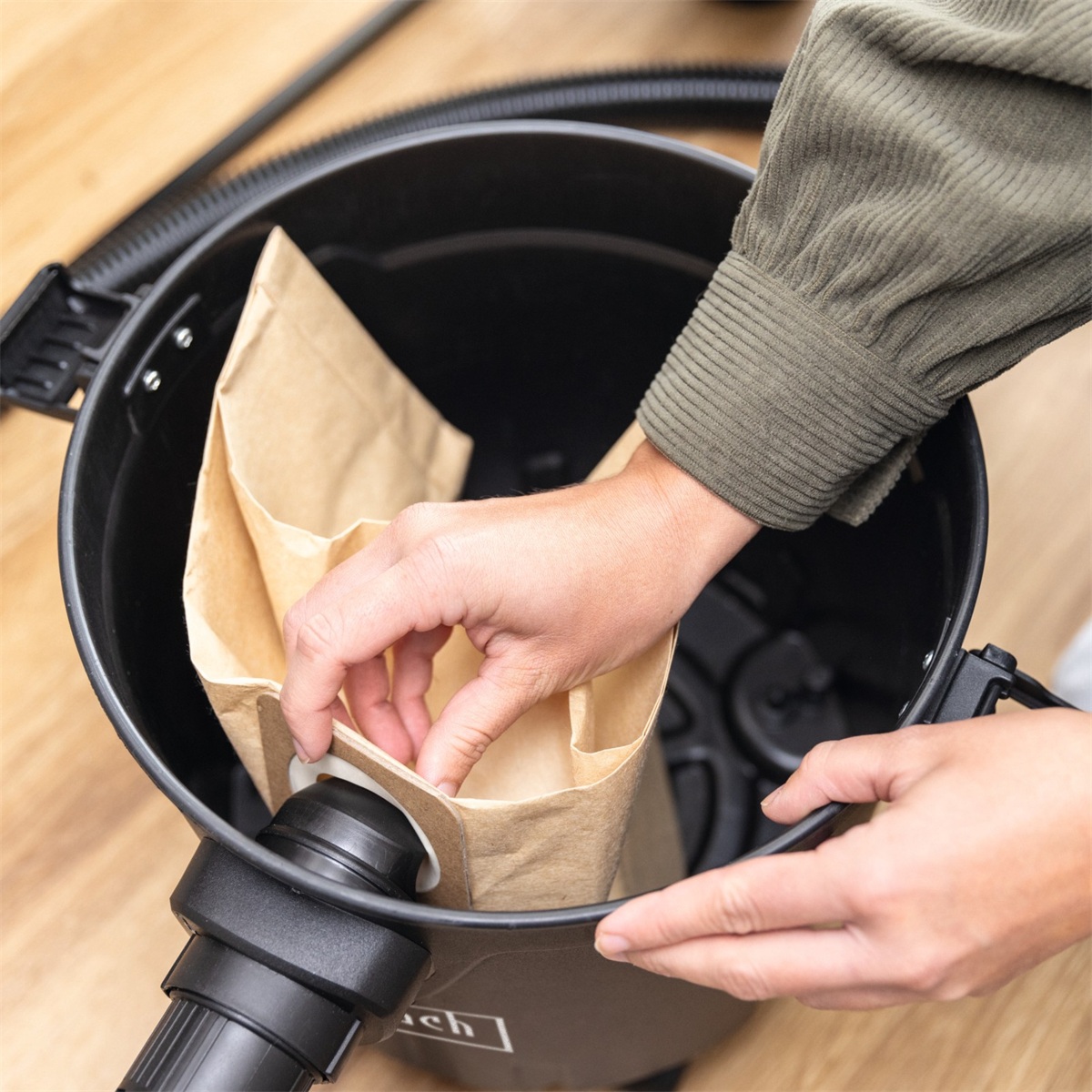Součástí balení je 1,8 m sací hadice, tři 33cm plastové trubice, papírový sáček s FSC certifikací, pěnový filtr, štěrbinová hubice a podlahová hubice – vše, co potřebujete pro dokonalý úklid bez kompromisů.
